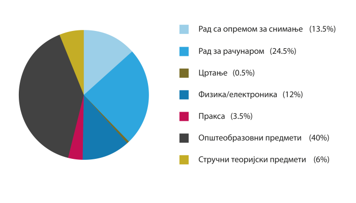 Ученици на овом образовном профилу обучавају се за медијску продукцију, тј. снимање и обрађивање звучних и видео записа, креирање графике и анимације, као дела мултимедијалног садржаја. Обучавају се за рад на месту снимања: постављају и повезују уређаје и додатну опрему, снимају слику, звучни и видео запис различитим техникама снимања у складу са захтевима медијског пројекта. Обучавају се за рад у постпродукцији, што подразумева коришћење софтвера за обраду и монтажу слике, звука и видео записа, као и креирање једноставне графике и анимације, припрему одговарајућег формата за дистрибуцију и објаву као и постављање мултимедијалних садржаја на интернет страницу.